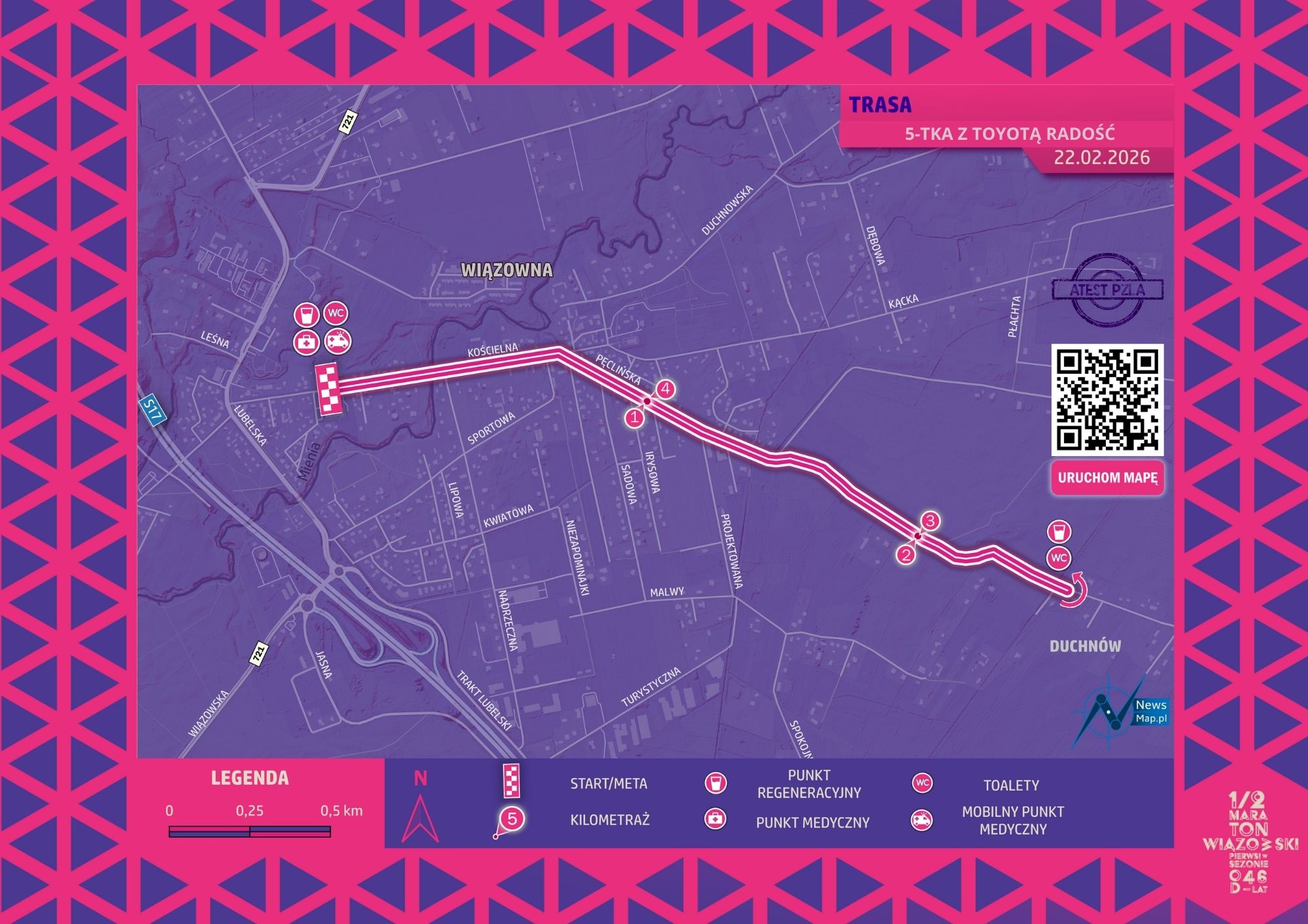 Półmaraton Wiązowski to pierwszy długodystansowy bieg rozgrywany w Polsce w okresie zimowo-wiosennym. To jeden z najstarszych tego typu wydarzeń w naszym kraju. Kultywujemy tę tradycję nieprzerwanie od 45 lat, a w 2026 r. pobiegniemy po raz 46.!